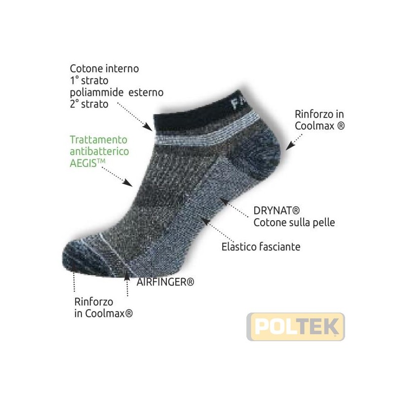 DRYNAT® Sistema a fibre alternate naturale/sintetica che accellera l'espulsione dell'umidità.