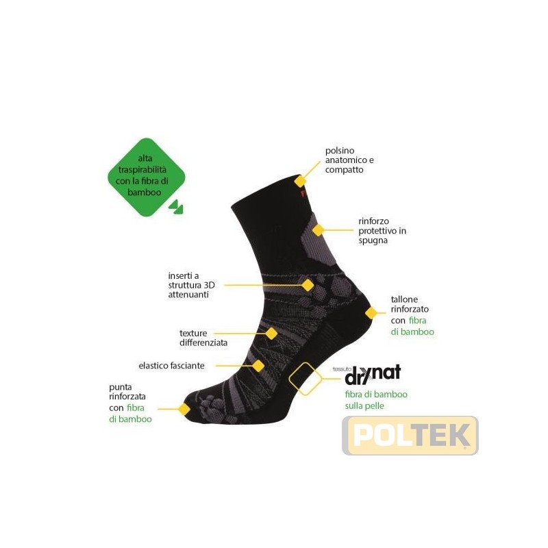 Calza in spugna di cotone open-end ammortizzante, semplice e versatile. La texture risulta piatta e non pesante mentre i rinforzi su punta e tallone proteggono le aree soggette a frizione. Il posino bielastico permette un'omogenea compressione senza però stringere. La calza non cede e non compromette la circolazione.