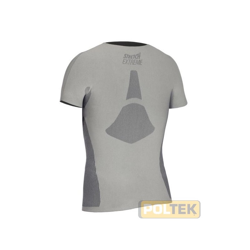 T-shirt tecnica con altissima traspirabilità, soprattutto nelle aree con maggiore traspirazione; i bordi tagliati a vivo e l'assenza di cuciture (tranne lungo le spalle) garantiscono un altissimo livello di comfort. Lavorazione tubolare lungo i fianchi per aumentare comfort, traspirabilità e soprattutto elasticità in modo che questo articolo sia fornito in taglia unica. Composizione: polipropilene, poliammide ed elastan.
