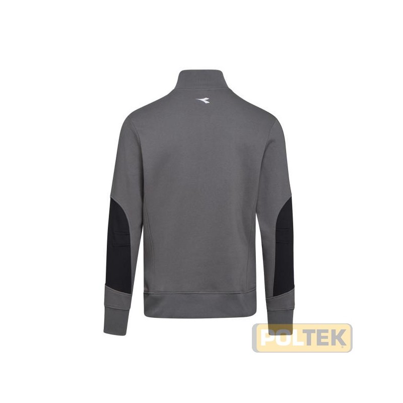 Felpa con zip garzata con inserti laterali neri su maniche e fianchi. Due tasche aperte laterali e una tasca frontale con zip. Collo, polsini e fondo in costina elasticizzata.