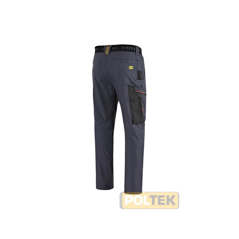 Pantalone in nylon stretch con elastico in vita e personalizzazione Utility. Tassello sul cavallo e gamba ergonomica per favorire la mobilità. Due tasche frontali chiuse con zip e due posteriori con chiusura in velcro. Due tasche cargo laterali con zip e dettagli fluo di cui una multiaccessoriata con porta metro, porta martello con loop. Trattamento Wicking 3M™ Scotchgard™ per asciugatura rapida. Slim fit.