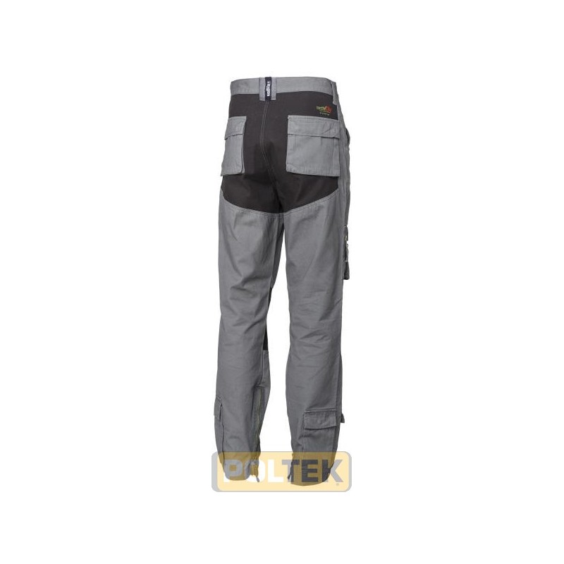 Pantalone multitasca 100% cotone canvas con inserti in tessuto stretch nei punti più sollecitati dal movimento, garantendo un elevato comfort all'operatore. Regolazione della vita tramite pratico sistema elastico e bottoni. Il pantalone è fornito in box.