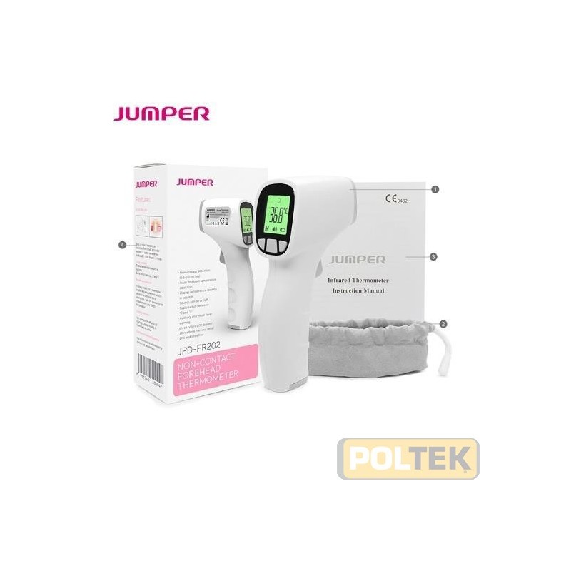 Il termometro JPD-FR202 è un termometro ad infrarossi senza contatto che misura la temperatura corporea in base all'energia infrarossa emessa dalla fronte. Gli utenti, dopo aver posizionato correttamente il termometro ad una distanza di 1-3 cm dalla fronte, possono ottenere rapidamente dopo un secondo i risultati di misurazione. Presenta due modalità di misurazione, sia della temperatura corporea e sia della temperatura di oggetti. JPD-FR202 può essere utilizzato sia in ambienti ospedalieri/ambulatoriali e sia domiciliari.