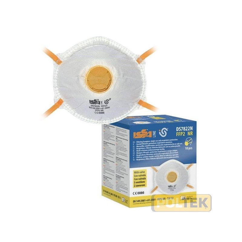 Facciale filtrante EN149 classe FFP2 per polveri tossiche e nebbie e fumi a base acquosa. Il livello di protezione è pari a 12 volte il TLV (valore limite di soglia pericolosità). La mascherina è dotata di valvola di espirazione.