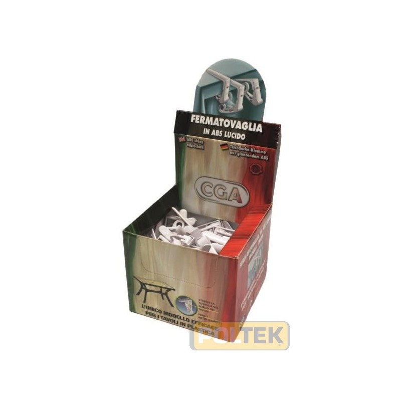 GRAZIE ALLA SUA PARTICOLARE FORMA E' IN GRADO DI FERMARE LE TOVAGLIE FISSANSOLE SOTTO I BORDI DEI TAVOLI DI PLASTICA.