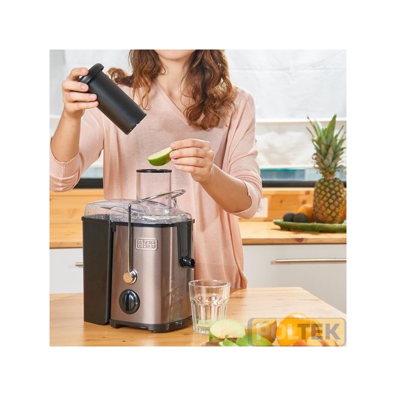 Diamentro bocca di alimentazione 62 mm Setaccio e lame in acciaio inox di alta qualità Corpo in acciaio inox con finitura anti-impronta Chiusura di sicurezza per una maggior protezione Alcuini componenti smontabili e lavabili in lavastoviglie. Due velocità di selezione + posizione off. Contenitore polpa 1,2 lt ; succo 0,55 lt. Piedini in gomma per una maggior stabilità.