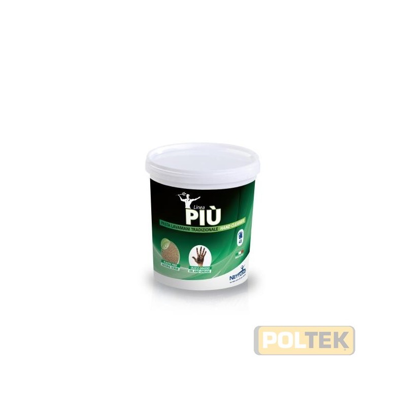 Di color nocciola e al profumo di limone, la Linea Più è la pasta lavamani tradizionale di Nettuno. Contiene microgranuli vegetali e minerali, i quali garantiscono un'azione pulente profonda.