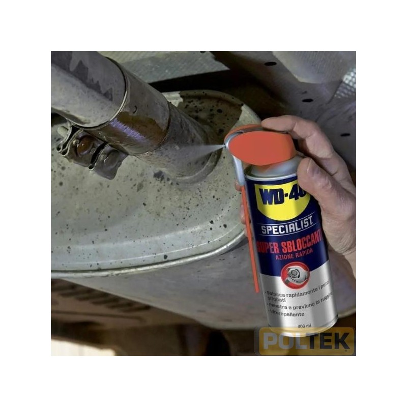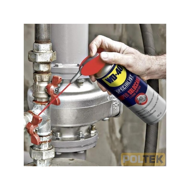 Il Super Sbloccante ad azione rapida, penetra rapidamente e libera i pezzi con notevole efficacia. La sua formula è adatta anche nei casi difficili di grippaggio e ossidazione. E' resistente all'acqua. Disponibile con il Sistema Doppia Posizione, che permette di passare da una vaporizzazione ampia ad una applicazione precisa in un solo gesto. E' efficace da -20°C a +90° C e questa formula è certificata H2 dalla NSF.