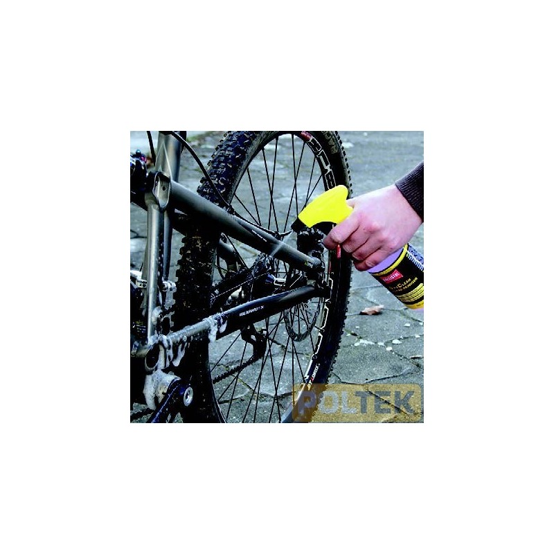 Schiuma detergente per la pulizia intensiva. BikeClean per la pulizia a fondo e senza residui di tutta la bicicletta, catena inclusa. Anche le tracce di sporco più ostinato (per es. incrostazioni residue di fango, polvere, grasso, olio ecc.) in punti di difficile accesso si sciolgono da sole. L'adesione di nuovo sporco viene ostacolata. A causa dell'elevata compatibilità, indicato anche per alluminio, cromo, carbonio, parti anodizzate e vernici opache. I tensioattivi che vi sono contenuti sono interamente biodegradabili. Non contiene silicone e acidi, senza idrocarburi.