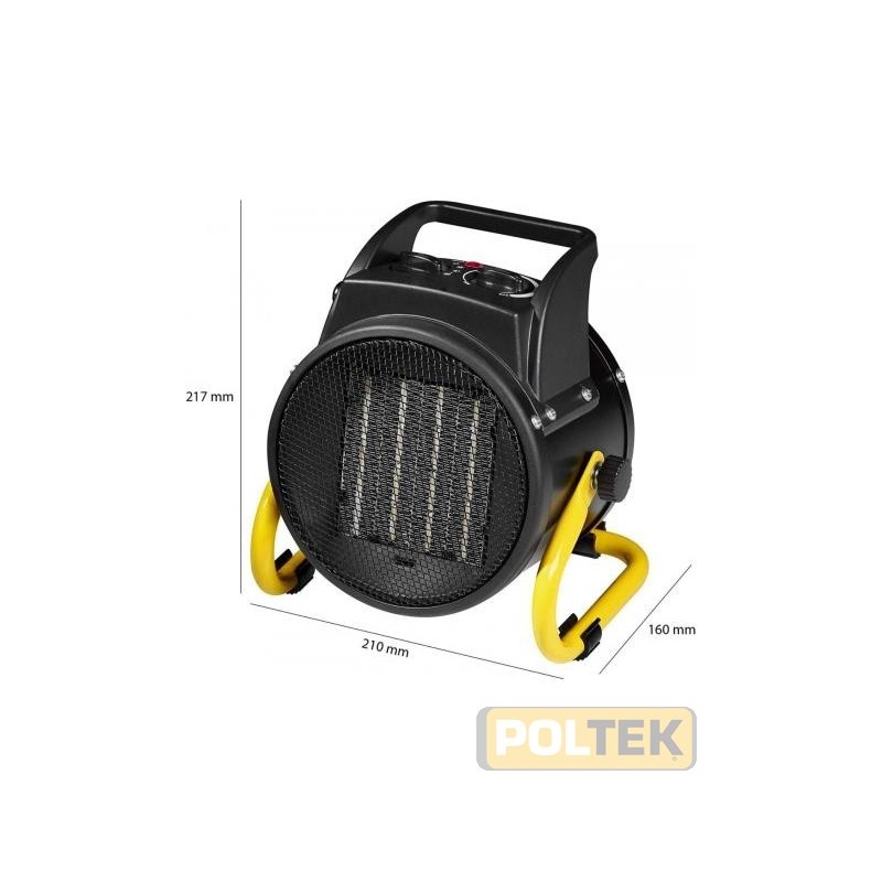 Alimentazione 220-240V ~ 50 Hz Potenza (W) 2KW Assorbimento 8.3-9.1A Fusibile richiesto 10A Regolazione potenza 25/1000/2000 Auto reset termostato 65° Volume d'aria calda generata 158 m3/ h Area di riscaldamento 40 m3 Temperatura di funzionamento -15°C / + 25°C Cavo 140 cm Grado di protezione IP20 Livello di rumore 50 dB Dimensioni prodotto Width x Height x Length: 210 x 217 x 160 mm