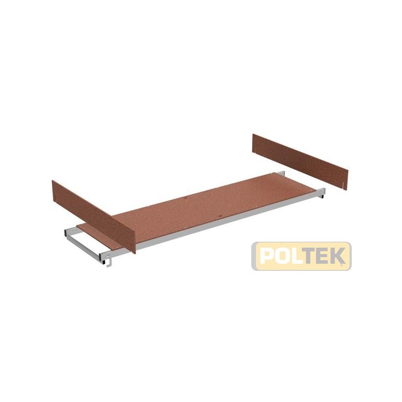 In acciaio e legno con botola e aste parapetto.