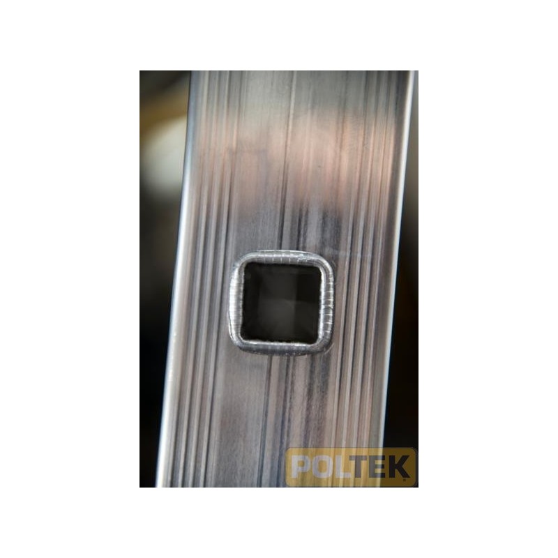 Profilo montante ELETTROSALDATO: il miglior rapporto resistenza/leggerezza. Profilo montante esterno con design GRECATO per una presa sicura. Pioli zigrinati antisdrucciolo mm 28x28. Base allargata per una maggiore stabilità con tacchi ergonomici maggiorati, chiavette e bulloneria per montaggio in dotazione. Angolo di apertura progettato per una comoda posizione di lavoro permette l'appoggio del corpo in tutta sicurezza. Distanza tra i gradini mm 280 per una comoda salita adatta a tutte le taglie. Cinghie antiapertura. Tacchi ergonomici antiscivolo per la massima aderenza al suolo obbligano alla corretta inclinazione.