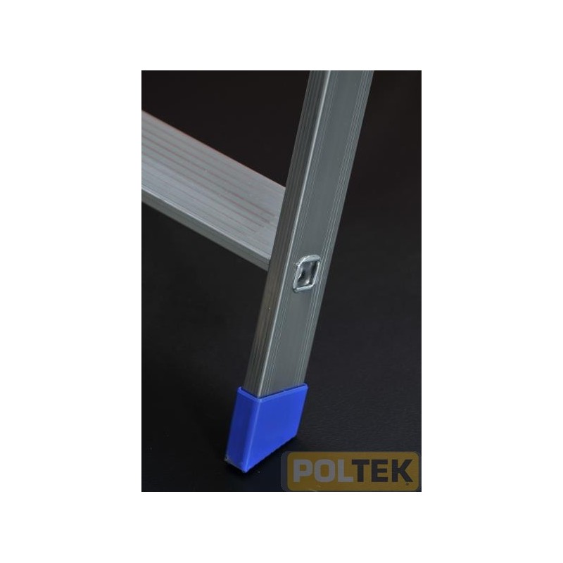 Scale doppie in alluminio elettrosaldato a gradini piani (mm 80) ad un tronco di salita, provvista di piattaforma e guarda corpo. Ideali per utilizzo professionale intensivo. Il gradino piano è stato progettato appositamente per la comodità dell'operatore. La ribordatura permette di evitare rotture, torsioni e sfilamento accidentale del gradino.