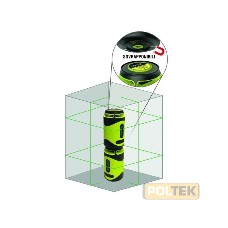 - Livella laser verde. Proietta un piano laser orizzontale a 360° più un piano verticale a 90° che forma 1 croce sulla parete. - Laser con intensità regolabile - Utilizzo in interni/esterni (con ricevitore non incluso) - Base magnetica e coperchio in metallo per un facile impilaggio - Batterie agli Ioni di Litio ricaricabili tramite il cavo USB in dotazione.