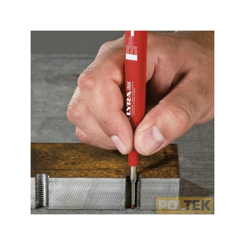 Marcatore di profondità. Scrive su tutte le superfici (legno, metallo, plastica, vetro, ceramica…). Inchiostro permanente. Larghezza di scrittura 1 mm.