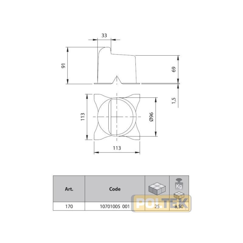 COMUNELLO BATTENTE D'ARRESTO ZINCATO PICCOLO h. 71