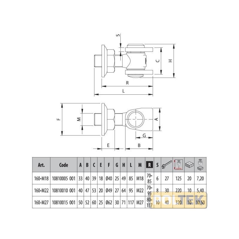 COMUNELLO CARDINE C/ALI E DADO REGOLABILE art.160 M18