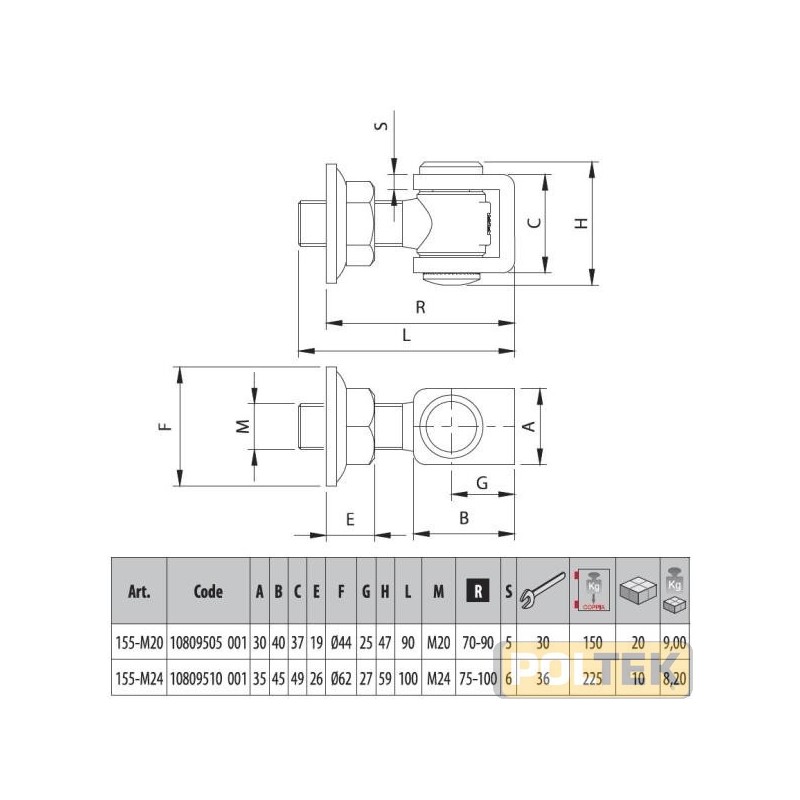 COMUNELLO CARDINE C/CAVALLOTTO E DADO REGOLABILE M24