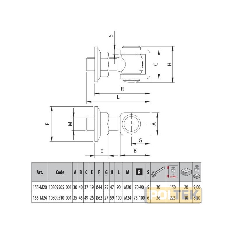 Cardine per cancelli battenti in acciaio, con cavallotto.