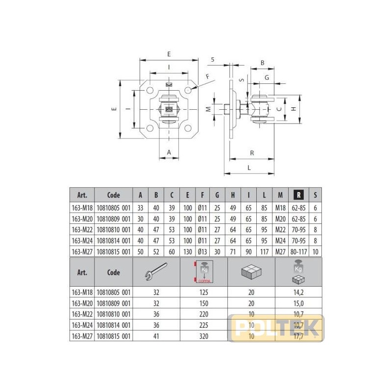 COMUNELLO CARDINE C/PIASTRA, ALI E DADO REG. M22