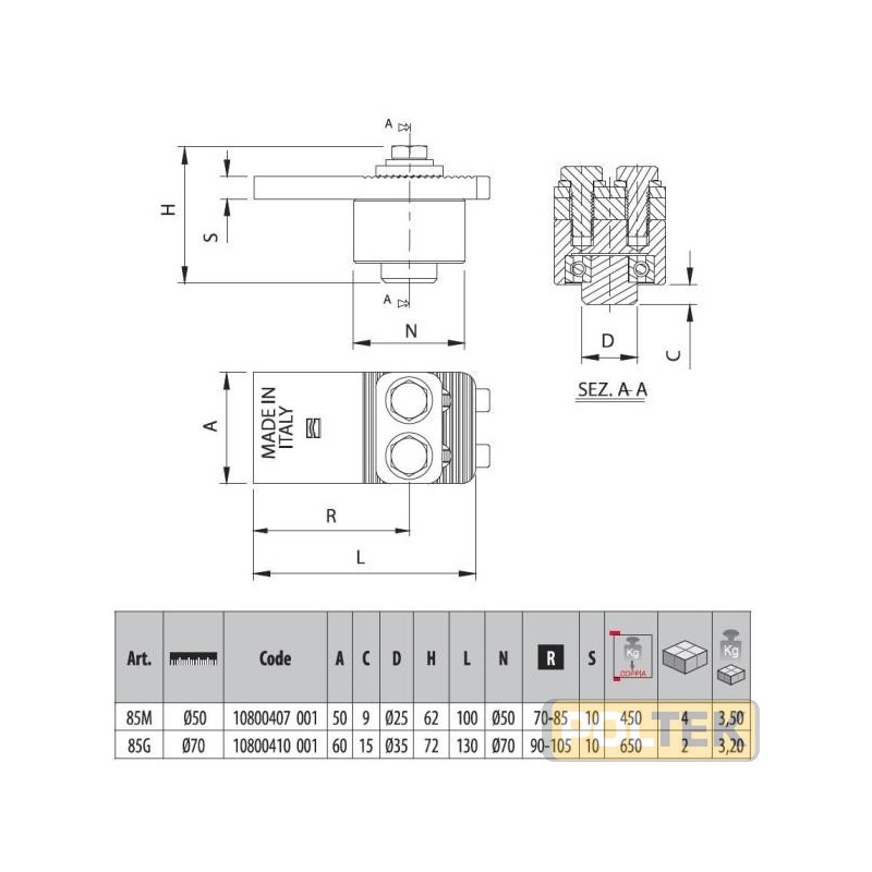 COMUNELLO CARDINE SUPERIORE REGOLABILE C/PIASTRA d. 50
