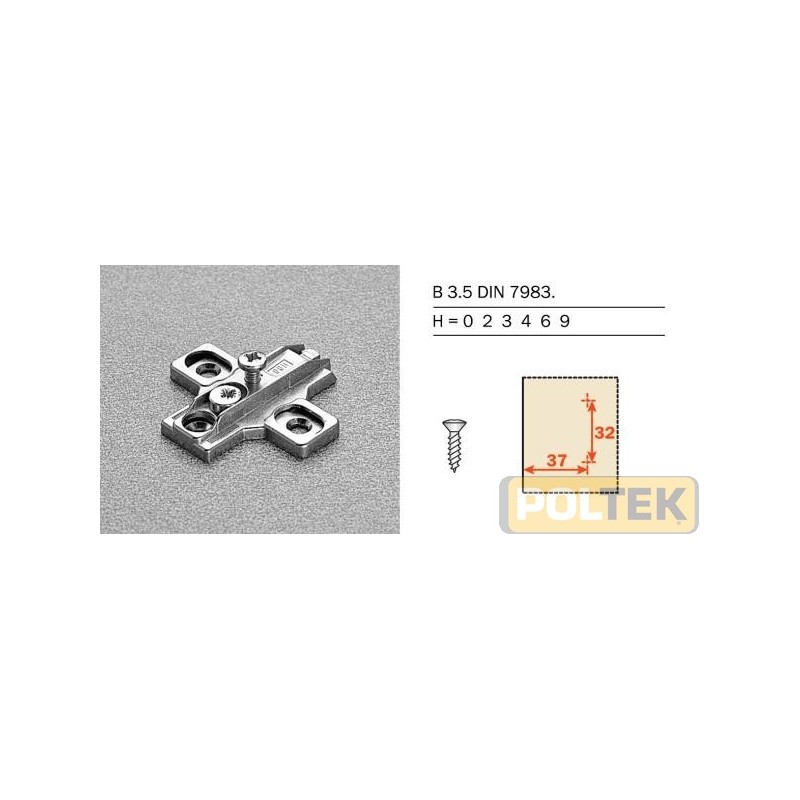 Per cerniere Serie 100, 200, 400, 600, 900 F, B, M, Silentia e Silentia+. Basi longitudinali e a croce. Regolazione verticale ±2 mm mediante eccentrico.