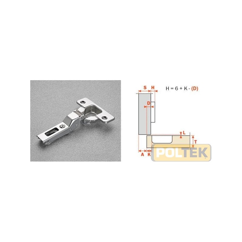 Dimensione scatolina ø 35 mm. Profondità della scatolina metallica 11 mm. Apertura 110°. Possibilità di foratura dell'anta "K" da 3 a 6 mm. Adattabili a tutte le basi tradizionali Serie 200 e a tutte le basi Domi a innesto rapido.
