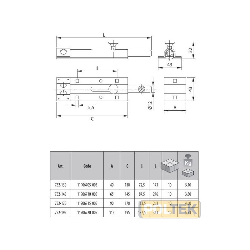 COMUNELLO CATENACCIO PORTALUCCHETTO ASTA TONDA d. 12 mm 145
