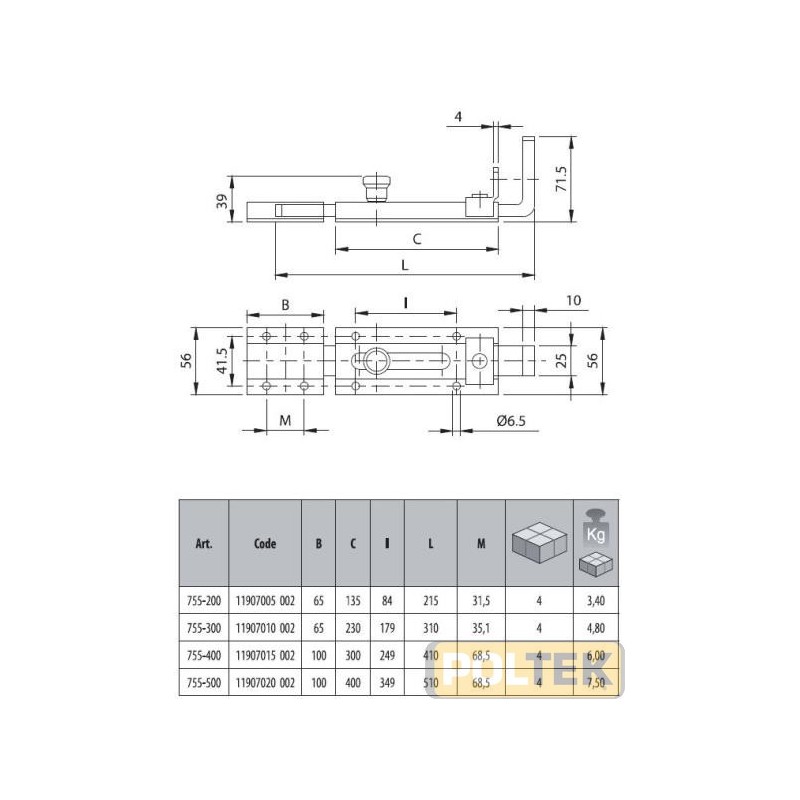 COMUNELLO CATENACCIO PORTALUCCHETTO PESANTE ASTA 25x10 cm 50