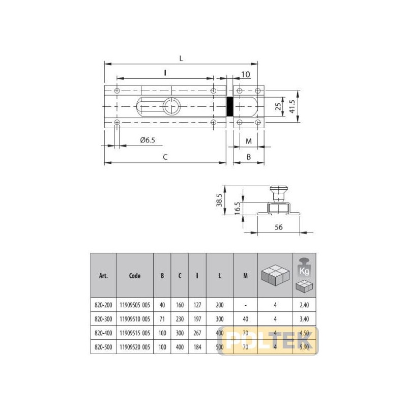 Catenaccio trasversale pesante 25mm per il bloccaggio dell'anta in chiusura.