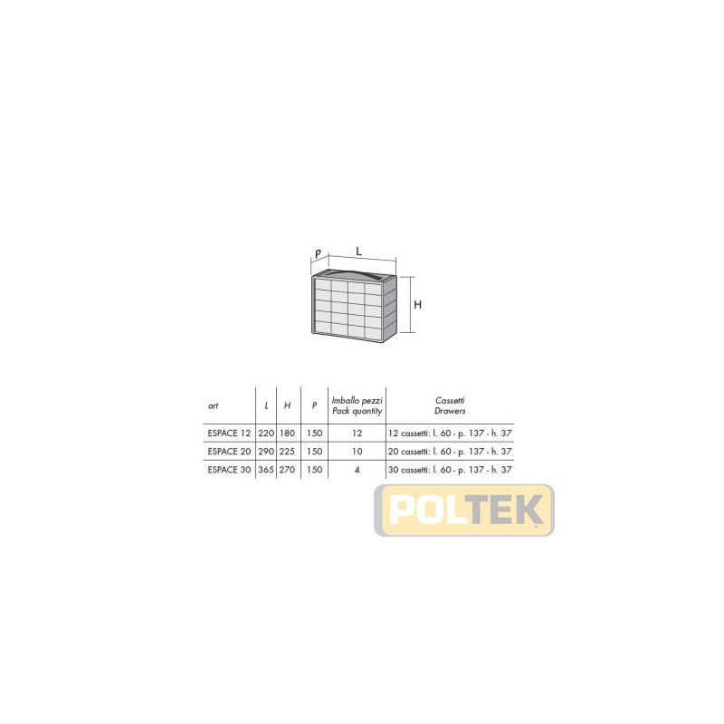 DIMENSIONI CASSETTI: 12 cassetti: l 60 x h 37 x p 137 mm