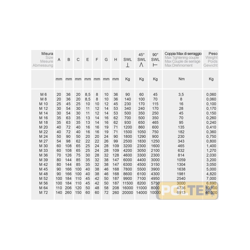 I golfari conformi alla norma DIN580/582 sono accessori per il sollevamento di carichi e non di persone.