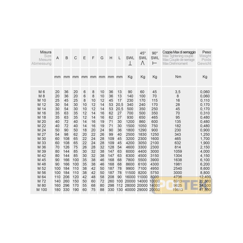 I golfari conformi alla norma DIN580/582 sono accessori per il sollevamento di carichi e non di persone.