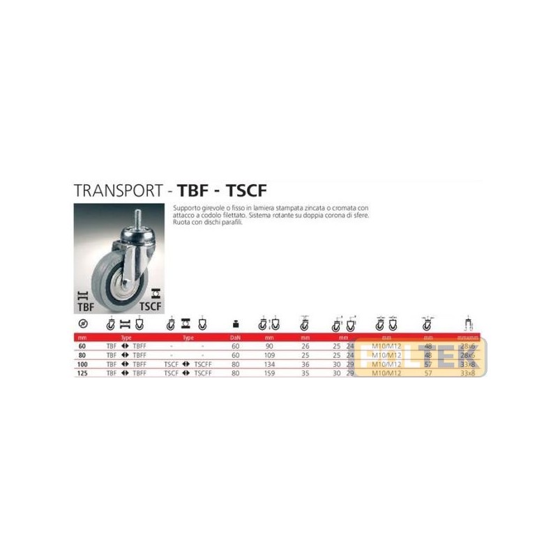 RUOTA CEBORA POLIMERO CON FILETTO M10 TBF mm 80 kg 60