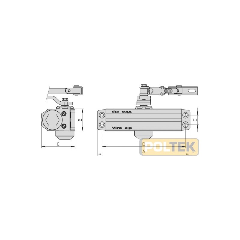 Tutti i chiudiporta della serie Viro ZIP hanno dimensioni molto contenute e sono pertanto particolarmente indicati per applicazioni in spazi limitati. Sono adatti all'applicazione sia su porte in legno che su porte in metallo (destre e sinistre) e si possono installare sulla porta (applicazione standard) o sullo stipite (applicazione rovesciata).
