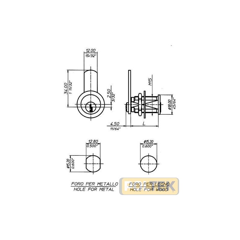 Serratura a leva da applicare con rotazione 90° destro + 90° sinistro (1 uscita chiave). Cilindro d. M15 mm 25. Finitura nichelato.