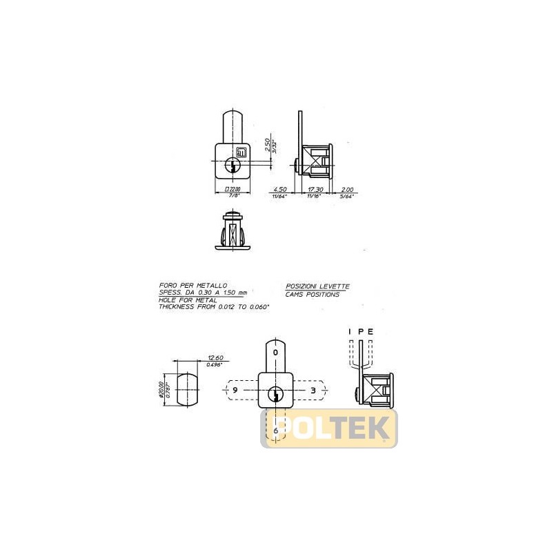 Serratura a leva universale montaggio rapido con rotazione 90° destro (1 uscita chiave). Corpo in polimero nero. Finitura nichelato (US14). Levetta piegata mm 5.