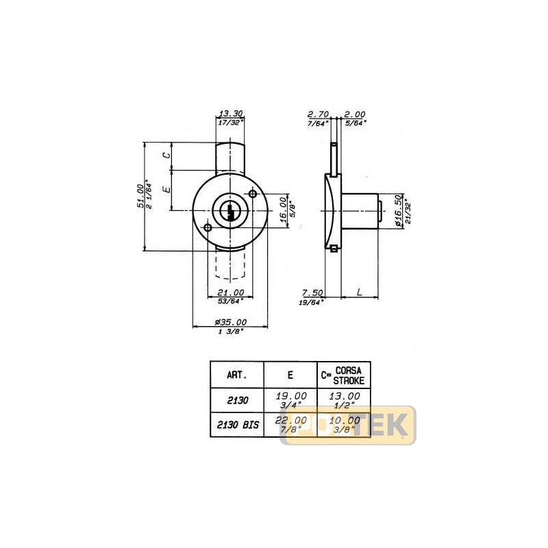 MERONI SERRATURA CATENACCIO APPLICARE 2130 NERO CIL. mm 20