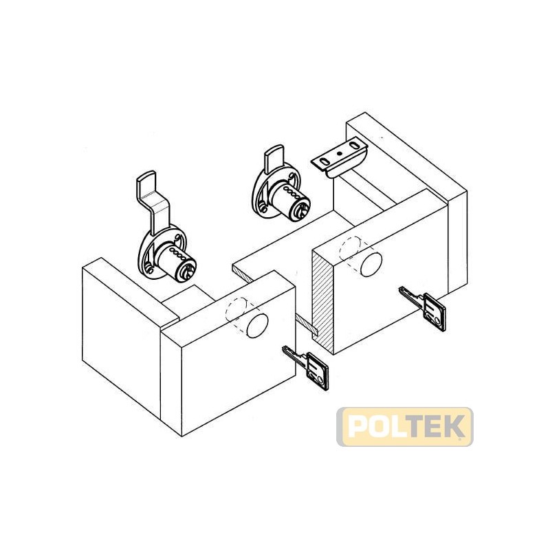 Serratura a catenaccio da applicare. Scatola in polimero nero. Cilindro d.16,5 mm 20. Finitura in ottone decapato (US4).