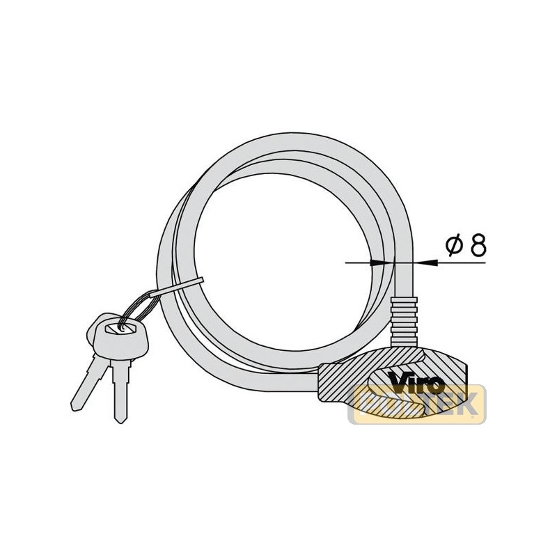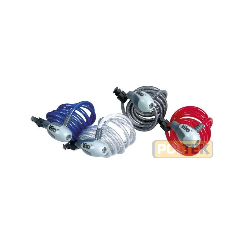 Cavi intrecciati: semirigidi, in acciaio Ø 8 mm., lunghezza 180 cm. che si avvolgono a spirale. Ricopertura colorata (blu, argento, rosso o nero) o semitrasparente in pvc antigraffio.