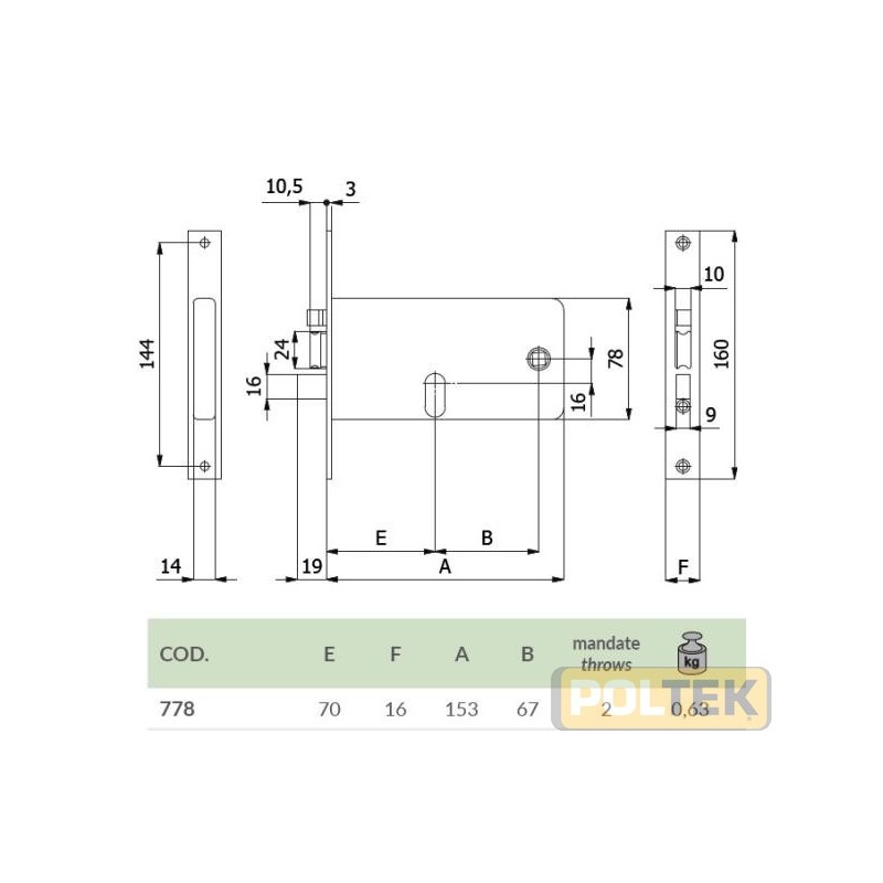 FUNZIONAMENTO: Catenaccio comandato dalla chiave - Scrocco comandato dalla chiave, dalla maniglia, dal comando elett rico a distanza o dal pulsante meccanico cod. 058 - Il funzionamento é garanti to anche in mancanza di corrente.
