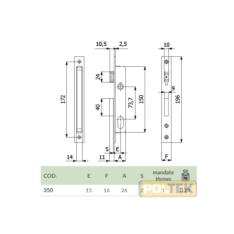CARATTERISTICHE COSTRUTTIVE: - Scatola e coperchio in acciaio zincato e plastificato - Frontale in acciaio nichelato e cromato - Catenaccio in acciaio od ottone nichelato - Scrocco in lega speciale od ottone nichelato - Rullo in ottone nichelato - Gancio in acciaio nichelato - Ingegno maniglia in ottone foro mm.8. FUNZIONAMENTO: - Catenaccio comandato dalla chiave - Scrocco comandato dalla chiave o dalla maniglia (per le versioni con cilindro ovale e a spillo entrata mm. 15 e 20 scrocco comandato solo dalla maniglia) - Rullo comandato a pressione - Gancio comandato dalla chiave. MANO: - Reversibile per tutte le versioni. PARTI IN DOTAZIONE: - Vite cilindro.