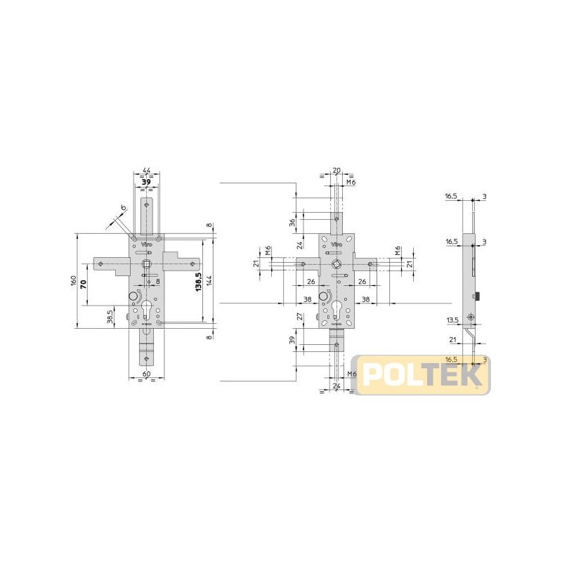 Meccanismo: predisposte per mezzo cilindro profilato con nottolino DIN o universale (ad es. i mezzi cilindri Viro gamma 770-975-875-880); interasse 70 mm.; fori di fissaggio asolati per la massima intercambiabilità coi modelli in commercio; azionamento dei catenacci con maniglia interna ed esterna; quadro maniglia 8 mm. Nottolino del quadro maniglia in acciaio sinterizzato; apertura dall'esterno con chiave, dall'interno con pomolo rotante non afferrabile dal lato esterno con strumenti da scasso.
