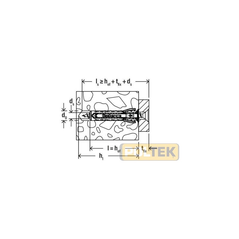 Diametro foro 8 mm Profondità foro min 55 mm Lunghezza fissaggio 40 mm Viti da legno e truciolari 5,0 x 50 mm