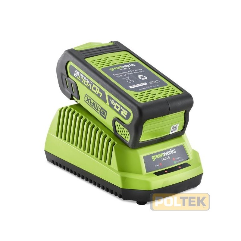 Le batterie 40V Greenworks garantiscono alte prestazioni e lunga durata grazie all'elevata capacità di carica.