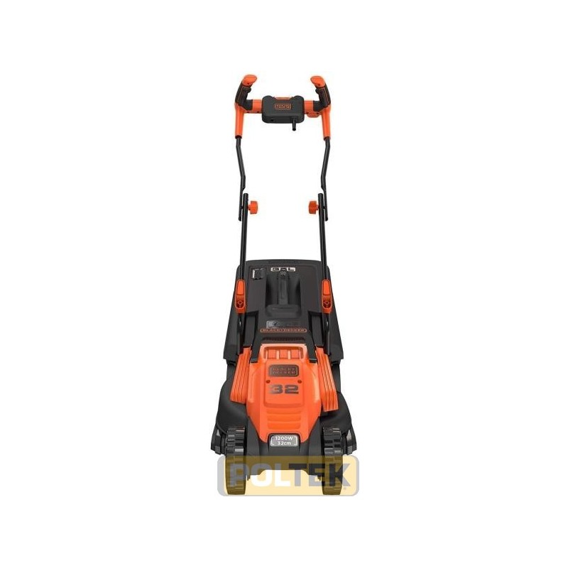 Rasaerba 1200W con 32cm di taglio, ideale per giardini di piccole dimensioni, con nuova impugnatura Bike che permette un'ottima manovrabilità. Il nuovo design delle lame garantisce l'80% in più di capacità di raccolta rispetto alla gamma precedente