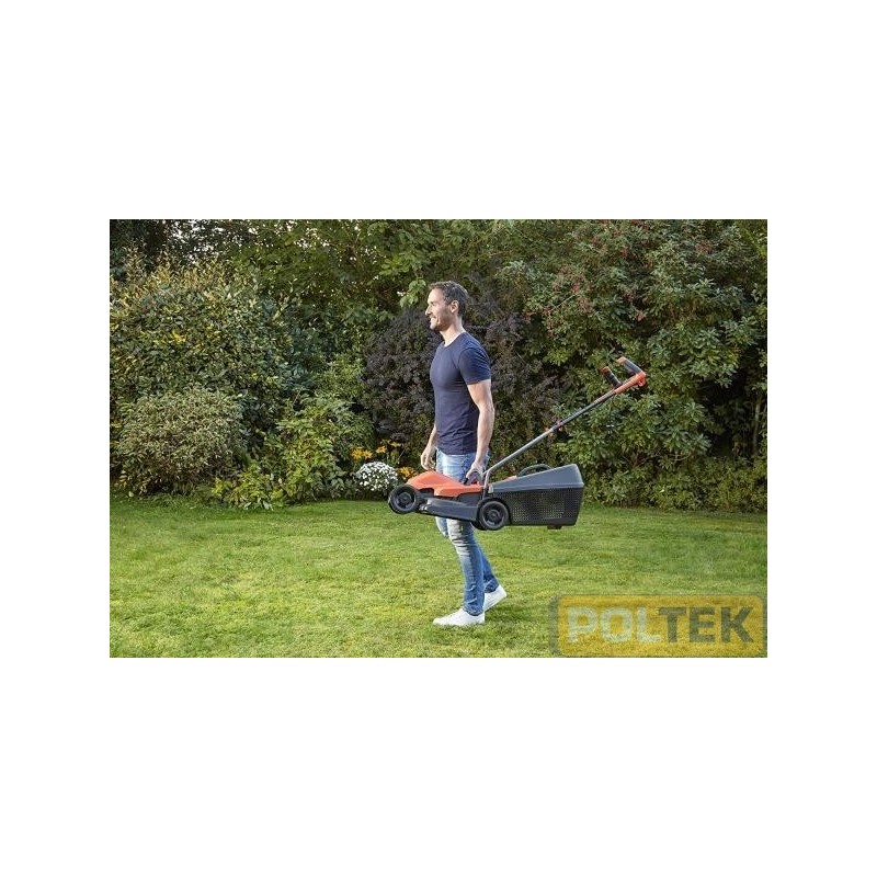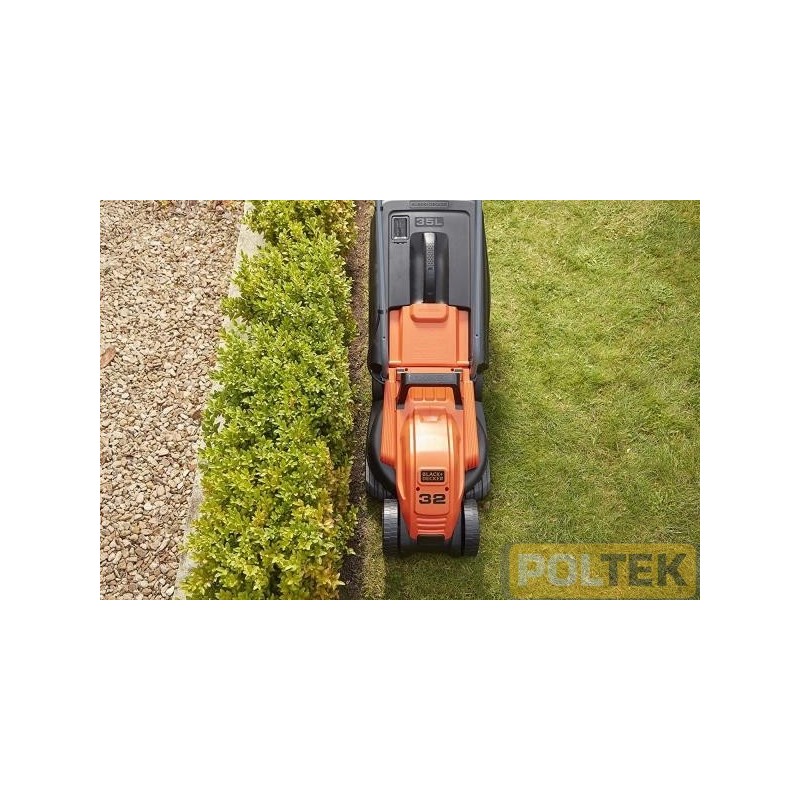 Caratteristiche tecniche Potente rasaerba compatto da 1200W e 32cm di taglio con nuova impugnatura dal design ergonomico Il nuovo design delle lame garantisce alte prestazioni offrendo una miglior raccolta dell'erba +80% e migliori risultati di taglio Ideale per giardini fino a 300 m² Compatto e leggero per un facile riponimento e un semplice taglio dell'erba Capacità del cesto di raccolta 35L: raccoglie più erba e riduce il tempo di svuotamento Intuitivo indicatore del cesto: ti permette di sapere quando il cesto è da svuotare Altezze regolabili: 20-60mm La maniglia integrata lo rende facile da trasportare