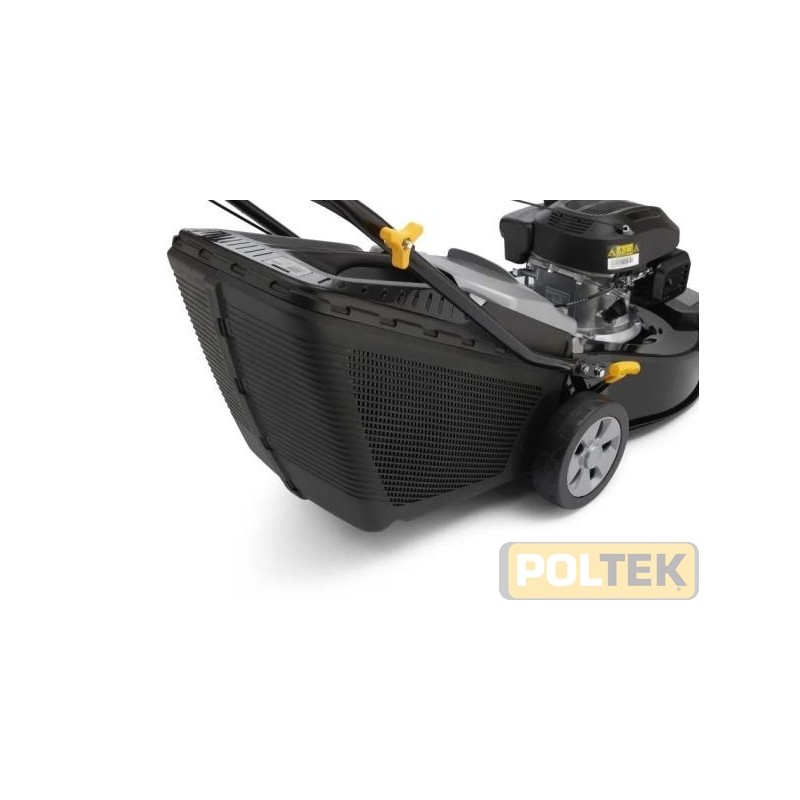 Alpina AL4 46 SA è il classico tagliaerba a scoppio caratterizzato da prestazioni elevate, struttura resistente e facilità d'uso, il tutto a un prezzo decisamente invitante. La trazione posteriore fa sì che il tagliaerba AL4 46 SA non necessiti di alcuna spinta e lo rende la scelta ideale per i giardini in pendenza o con aree troppo sconnesse o irregolari, difficili da gestire con un modello a spinta. L'AL4 46 SA è alimentato da un motore a quattro tempi STIGA da 125cc, indubbiamente potente, affidabile e facile da avviare. La regolazione centralizzata dell'altezza di taglio semplifica e velocizza il settaggio delle impostazioni desiderate, mentre il resistente piatto di taglio in acciaio non lascerà alcun dubbio sulla resistenza nel tempo del tuo acquisto. Realizzato in plastica leggera e anticorrosione, il sacco di raccolta di questo modello può contenere fino a ben 60 L di residui ed è dotato di un'impugnatura smart, che ne semplifica e velocizza il montaggio e la rimozione. L'indicatore di riempimento consente inoltre di tenere sotto controllo la capienza massima del sacco. Questa macchina con ampiezza di taglio da 46 cm viene proposta con ben due anni di garanzia del produttore.