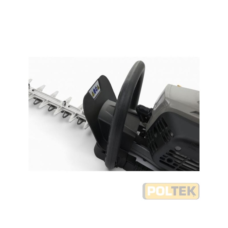 Un tagliasiepi con motore a scoppio da 22,5 cc, dotato di lama doppia da 60 cm e impugnatura morbida posteriore rotante, che pesa soltanto 5,6 kg.