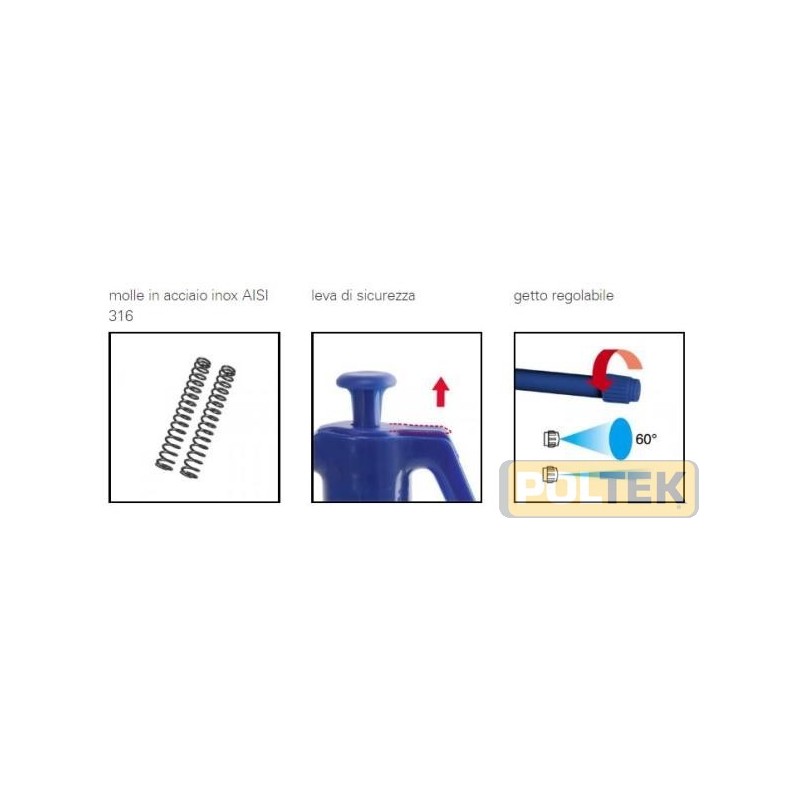 Dotata di una speciale valvola di sicurezza inserita nella testa pompante, di guarnizioni in FPM o Viton e di un beccuccio particolarmente lungo per effettuare interventi mirati. Adatto per spruzzare oli, lubrificanti, disarmanti edili, solventi, detergenti e disincrostanti.